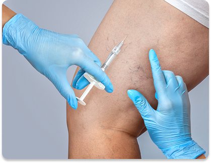 "Secagem de vasinhos" com aplicação de medicamentos nas veias acometidas. Rápido, eficaz e sem repouso. Feita no consultório com máximo conforto. Com resfriamento da pele é praticamente indolor.