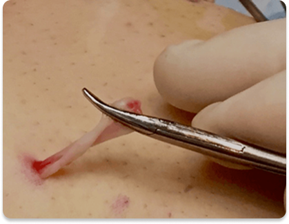 Para varizes dilatadas, feita com microincisões, anestesia local e sedação leve. Retorno imediato às atividades, sem parar sua rotina.